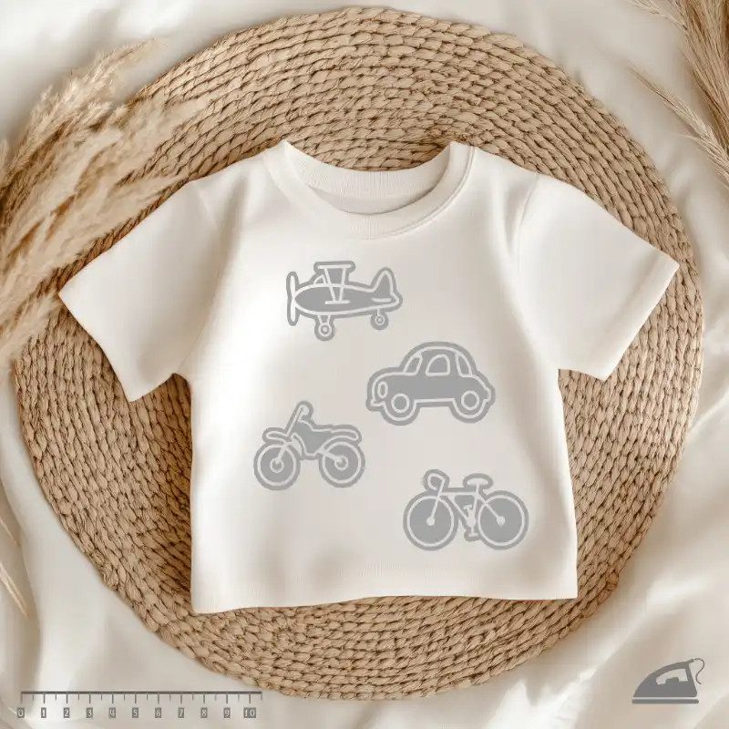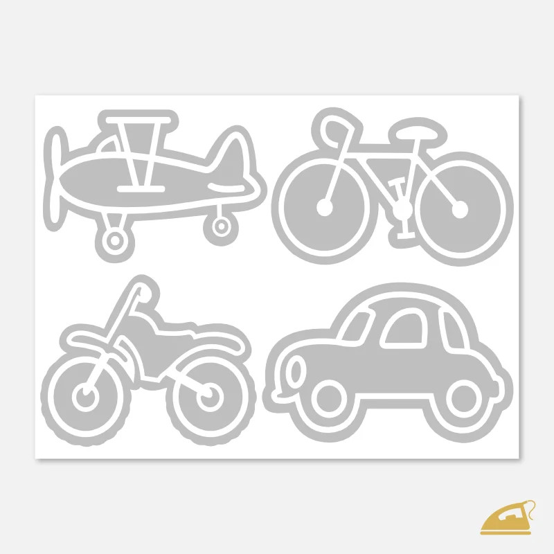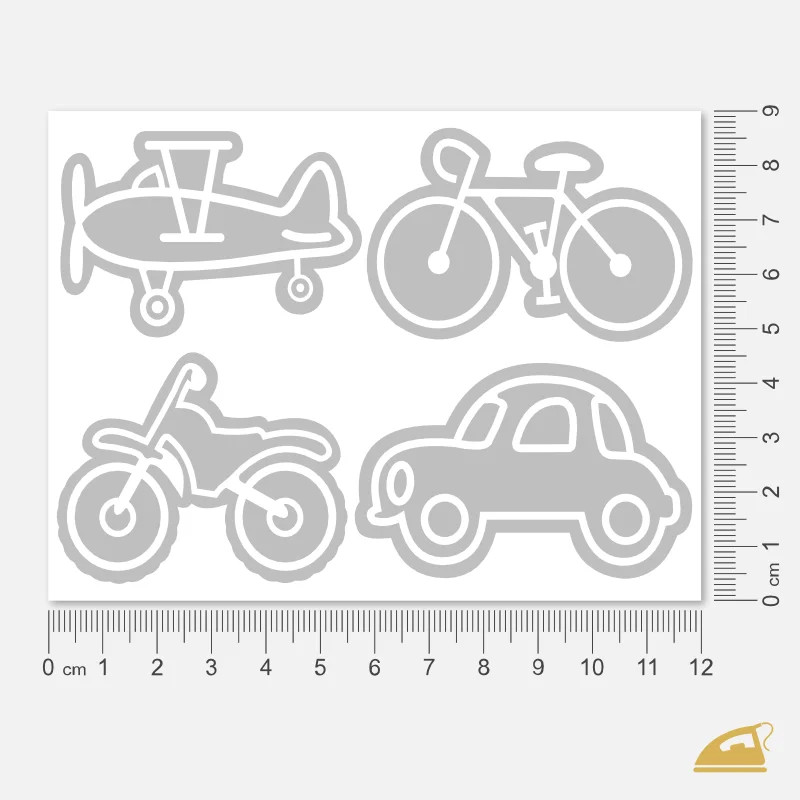 Má váš syn oči jen pro auta, motorky a letadla? S naší sadou reflexních nažehlovaček Dopravní prostředky spojíte jeho nadšení s vaší jistotou, že je na silnici dobře vidět. Na archu o rozměru 9x12 cm najdete čtyři výrazné motivy navržené speciálně pro mladší chlapce: historický dvouplošník, osobní automobil, terénní motorku a silniční kolo.