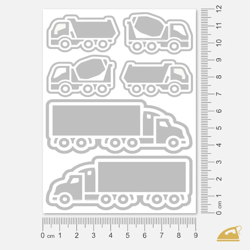 Hledáte reflexní prvky, které ochrání vaše dítě opravdu ze všech stran? Naše reflexní nažehlovačky s mixem náklaďáků jsou navrženy pro 360° viditelnost. Na archu 9x12 cm najdete strategickou sestavu: 2 mohutné kamiony s velkou odrazovou plochou na hruď či záda a 4 menší stavební stroje (míchačky a náklaďáky), které perfektně sednou na rukávy nebo boky kalhot.