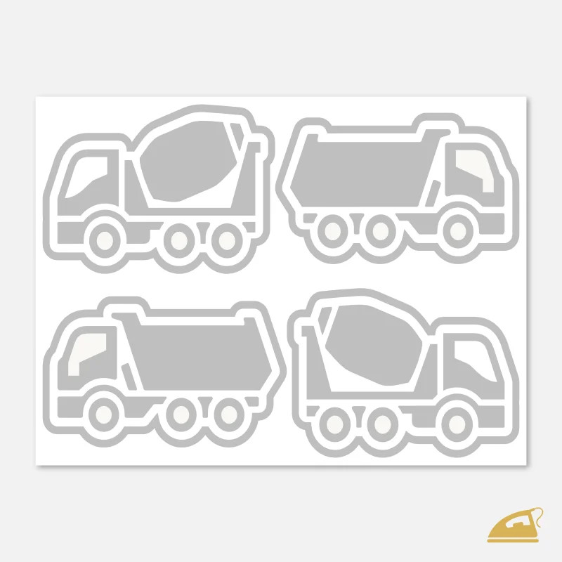 Má vaše dítě oči jen pro bagry, míchačky a velká auta? Naše reflexní nažehlovačky se stavebními stroji jsou navrženy tak, aby dělaly radost dětem a zároveň klid rodičům. Na archu 9x12 cm najdete 4 velké motivy (2x míchačka na beton, 2x náklaďák), které jsou zrcadlově otočené.