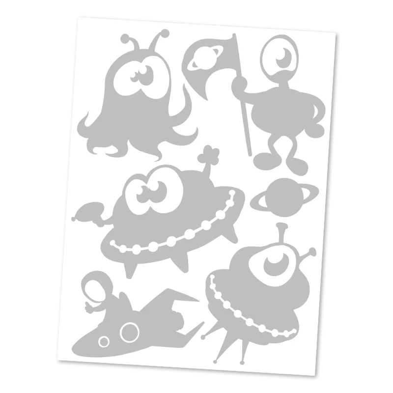 Tato sada obsahuje 6 reflexních motivů s vtipnými mimozemšťany, jejich létajícími talíři a odvážným kosmonautem na raketě. Perfektní způsob, jak hravě zvýšit bezpečnost dětí za šera a zároveň stylově ozdobit bundy, mikiny nebo batohy.