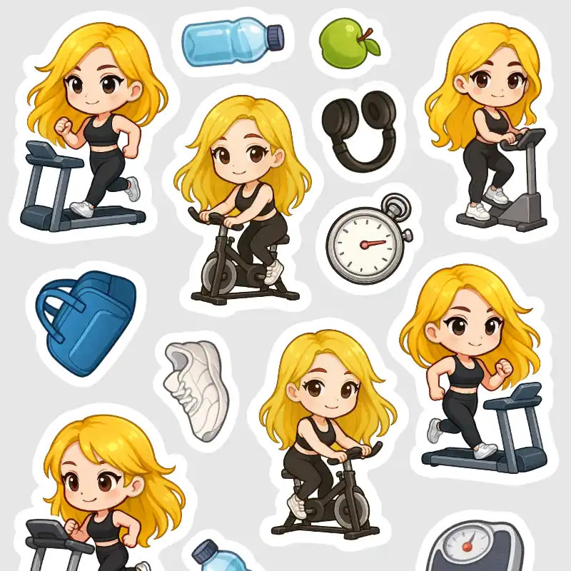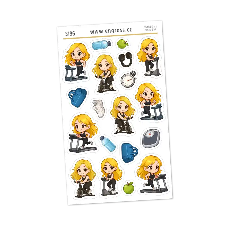 Hledáte způsob, jak si zpříjemnit plánování tréninků a udržet si motivaci? Naše mini samolepky s motivem blondýnky v posilovně jsou navrženy přesně pro tyto účely. Aršík obsahuje detailní ilustrace cvičení na stepperu, běžeckém pásu i spinningovém kole.