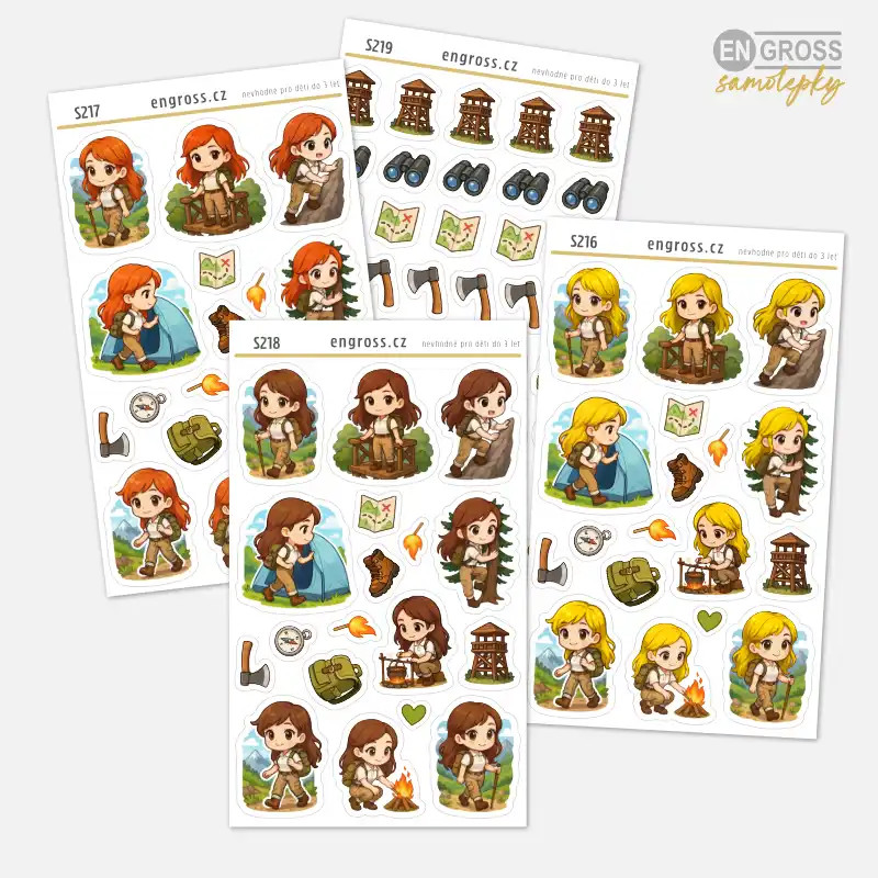 Samolepky Táboření a Turistika - Brunetka
