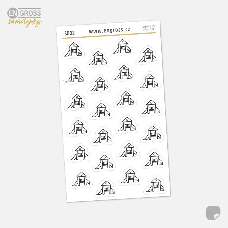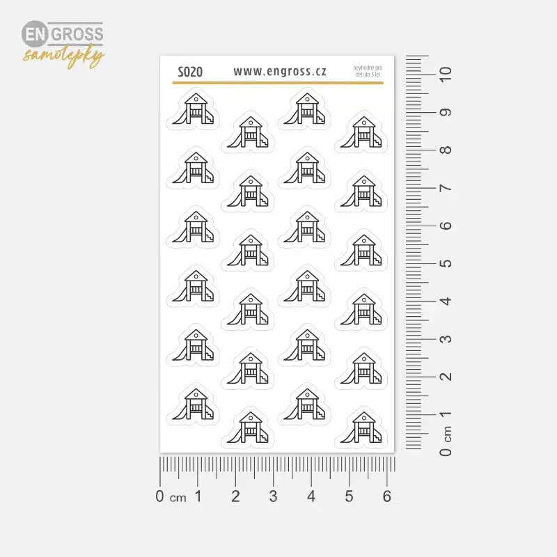 Mini samolepky s ikonou dětské skluzavky pro zaznamenání času stráveného s dětmi venku na hřišti. Nálepky pro chvíle pohybu, smíchu a dětské radosti.