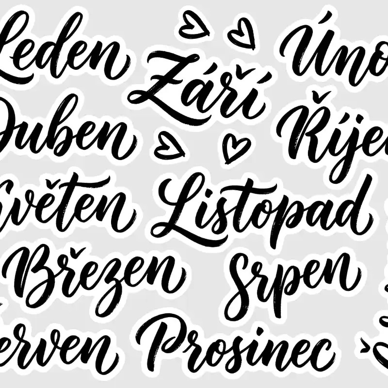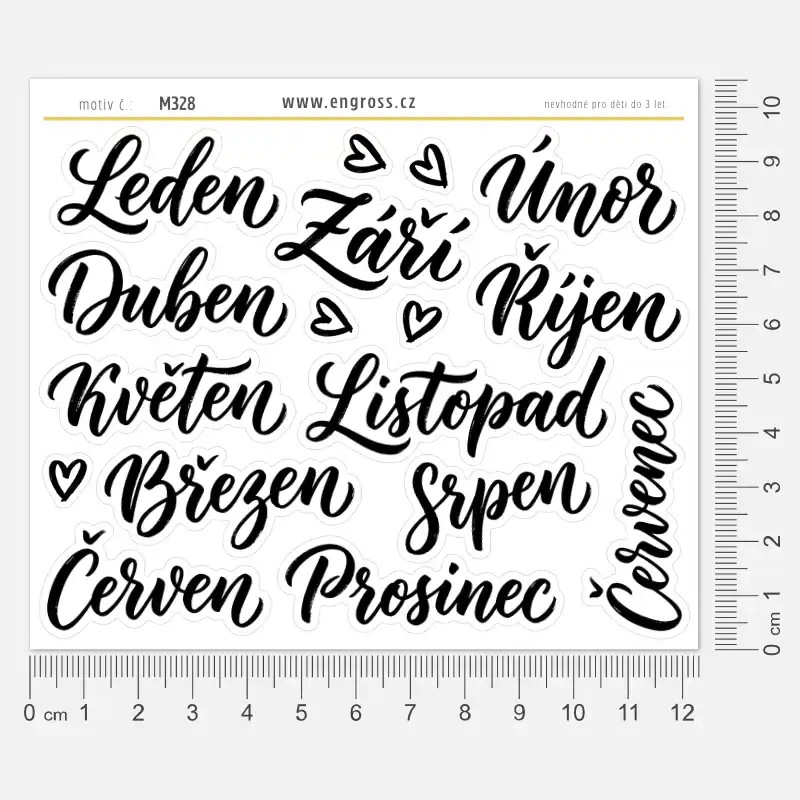 Něco navíc: Aršík obsahuje i kaligrafická srdíčka, která můžete využít k dozdobení nápisů nebo k označení důležitých dat.