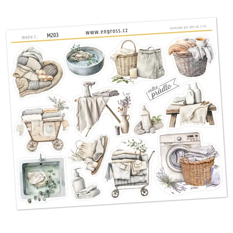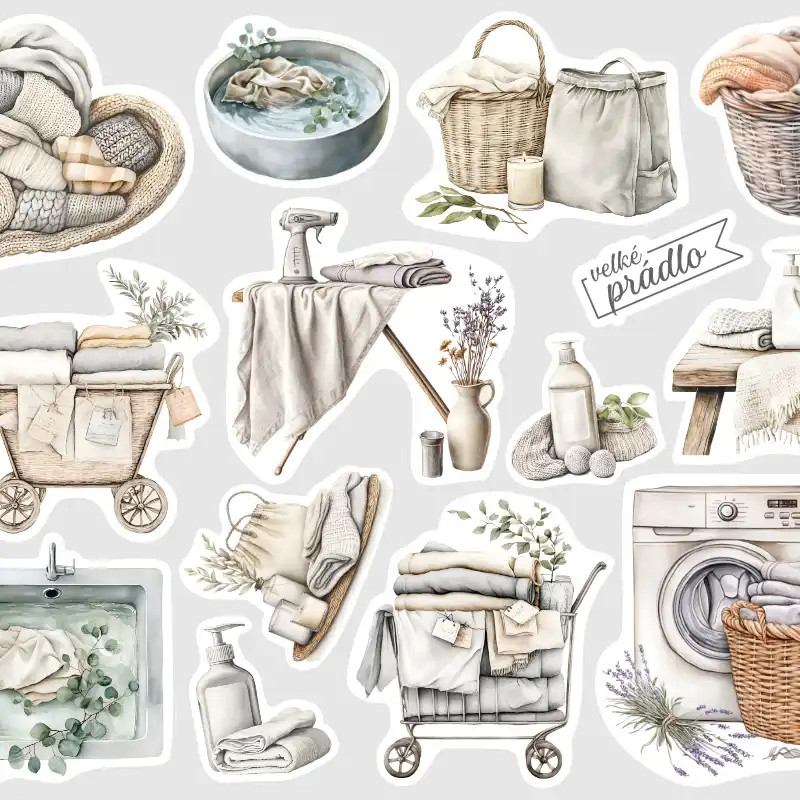 🧺 Samolepky s prádlem v jemných barvách