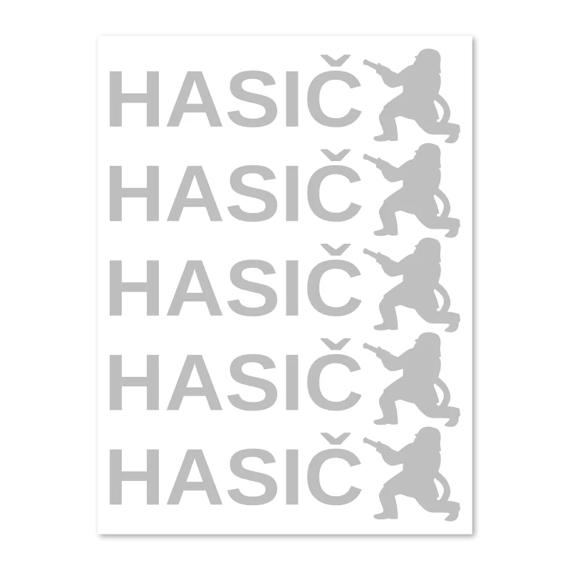 Reflexní nažehlovací nápis HASIČ se siluetami hasiče pro dětské oblečení. Arch s 5 ks reflexních motivů pro zvýšení viditelnosti i radost malých hasičů.