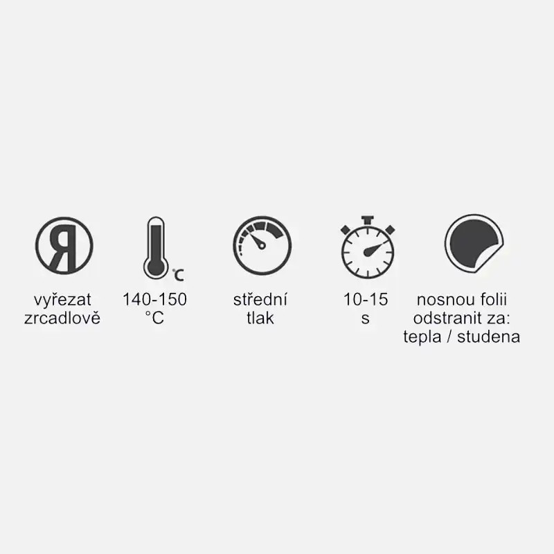 Práce s touto fólií je radost, nikoliv starost. Středně lepivá nosná vrstva zajišťuje, že se motiv při separaci nepohne, a usnadňuje přesné umístění na textil před samotným lisováním. Velkou výhodou je možnost odstranění nosné fólie za tepla i za studena. Pokud spěcháte, strhnete ji ihned po nažehlení a zrychlíte tak celou produkci. Pokud zapomenete, nic se neděje – fólie půjde dolů stejně snadno i po vychladnutí.