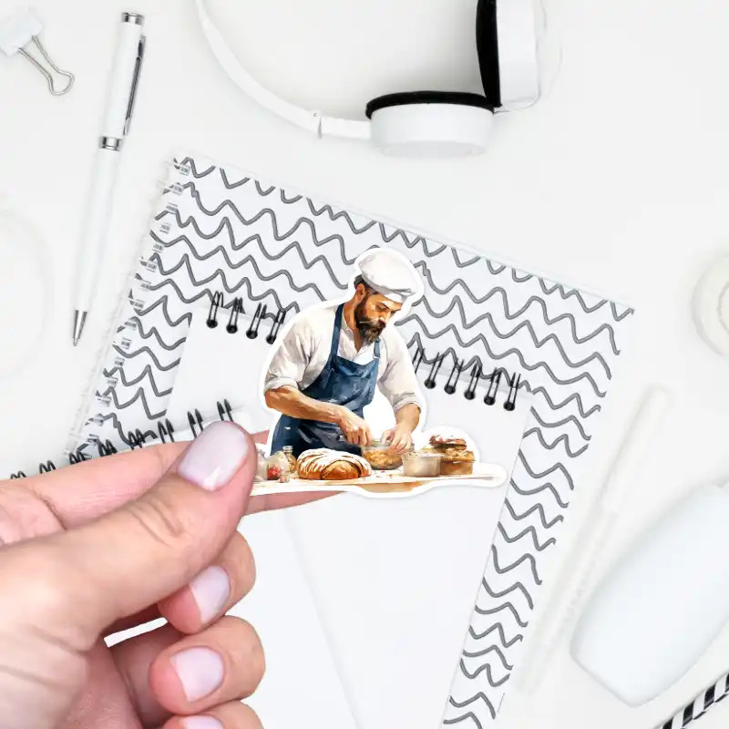 Vzdejte hold kráse řemesla s aršíkem, který zachycuje pekaře a pekařku při práci s těstem. Autentické watercolor ilustrace ve zlatavých tónech jsou skvělým doplňkem pro každý kreativní deník.