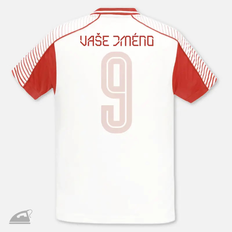 Nažehlovací potisk k domácímu nažehlení - jméno nebo název sportovního klubu na záda dresu. Vyrobíme podle přání.