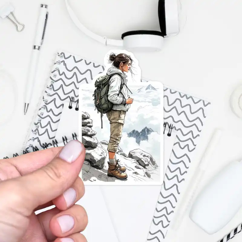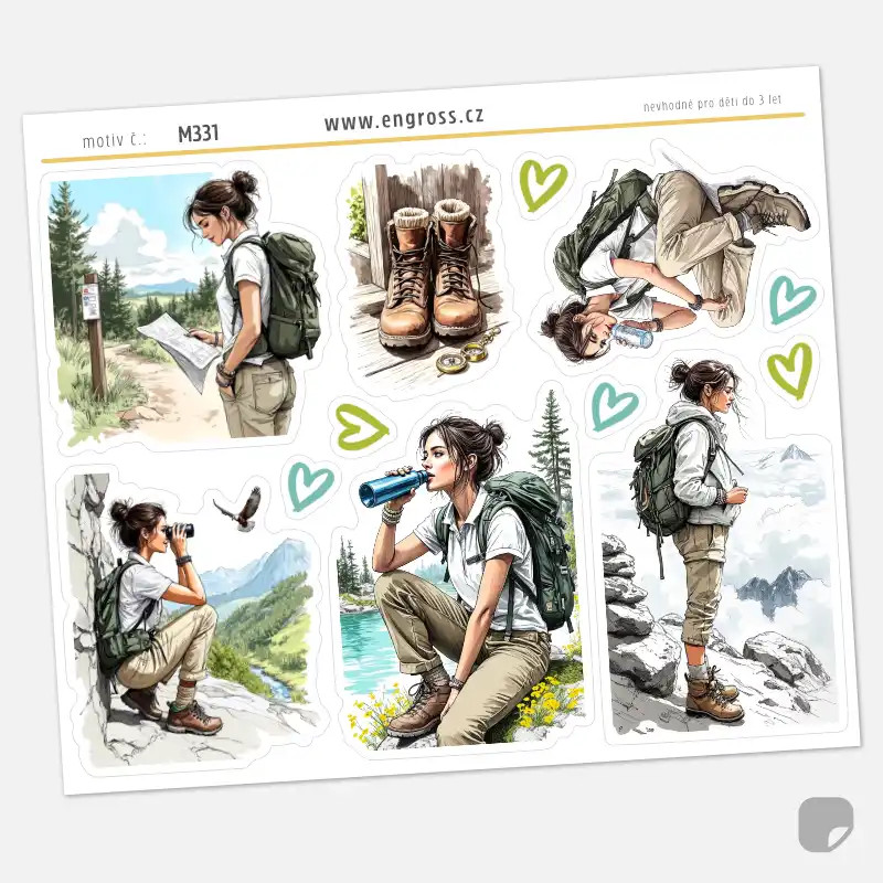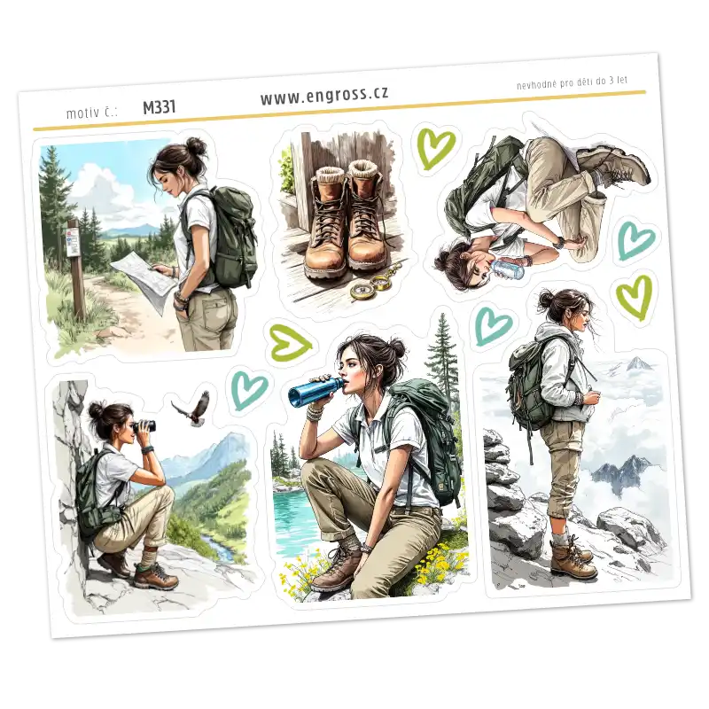 Horská série pokračuje! Naše samolepky „Horská túra s Miou“ oslavují krásu aktivního odpočinku v přírodě. Jemná technika pencil sketch dává každé nálepce vzhled ruční kresby, která v kombinaci s akvarelovými tóny skvěle podtrhne příběh vašich vlastních výprav.