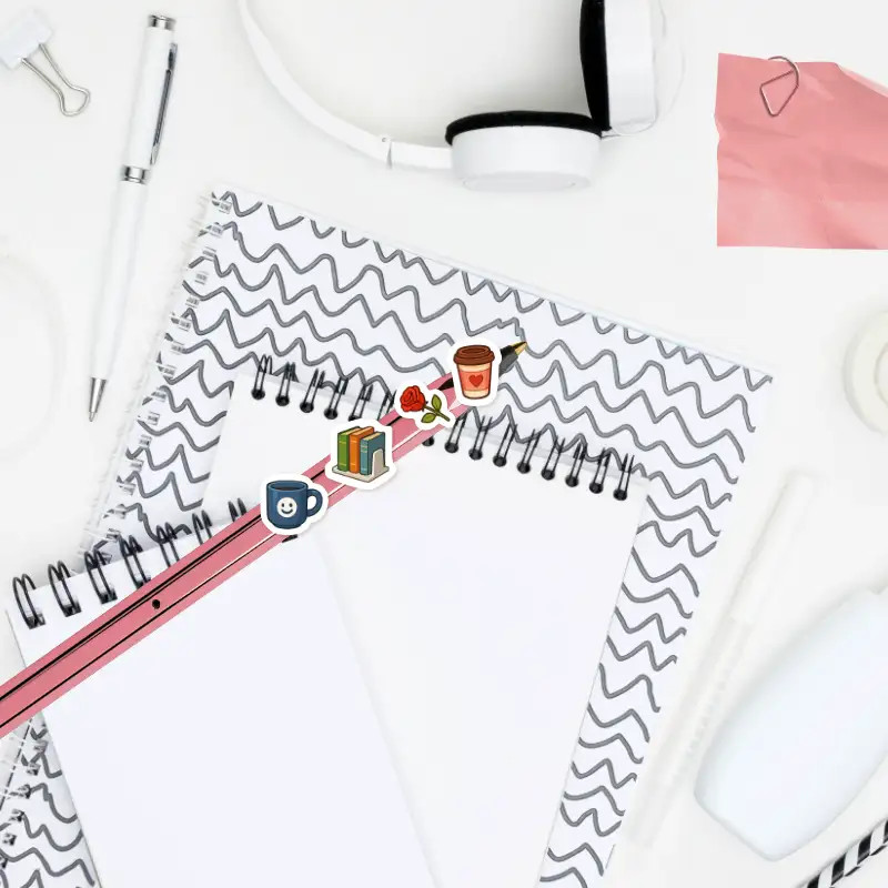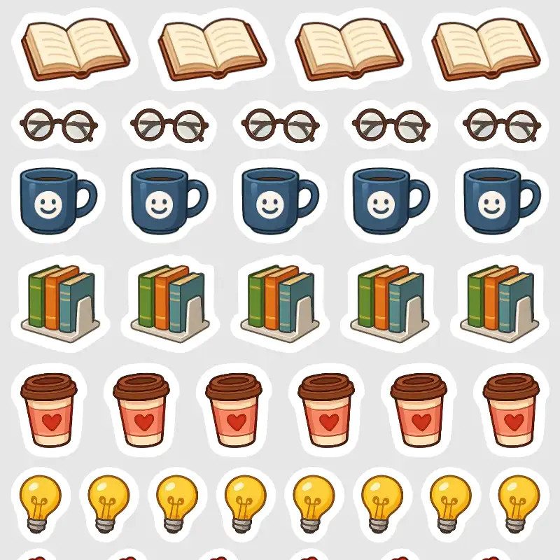 Mini samolepky s motivy knih, kávy, růží, smajlíků a dalších ikon, které vystihují různé literární žánry. Skvělé do čtenářských deníků i diáře.