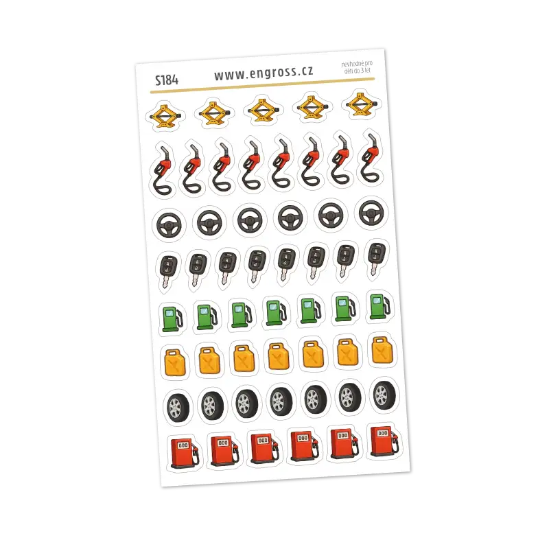 Praktický mini aršík s 54 barevnými samolepkami na téma auto – tankování, servis, výměna pneumatik i jízda. Hodí se do každého diáře, i toho nejmenšího.