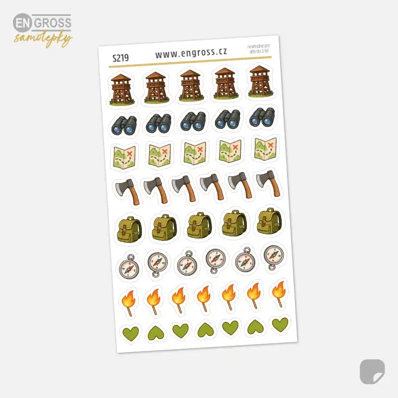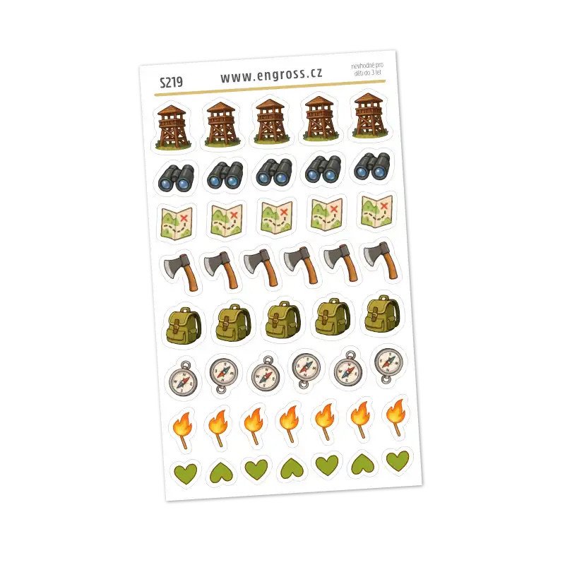 Plánujete přechod hor, víkend pod stanem nebo jen nedělní výlet na rozhlednu? Naše samolepky „Táboření a turistika – mini ikonky“ jsou stvořené pro detailní záznamy všech vašich outdoorových aktivit. Tento aršík je navržen jako výhodné balení, které vám poskytne dostatek symbolů pro celou sezónu.
