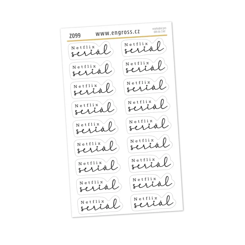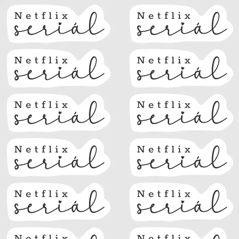 Seriálový maraton? Nebo jen jedna epizoda na dobrou noc? S našimi textovými samolepkami „Netflix seriál“ získá diář tu správnou dávku pohody. Elegantní ručně psané písmo dodá plánování šmrnc a pomůže přehledně zaznamenat večery, kdy patří gauč a deka jen tobě a oblíbenému seriálu.