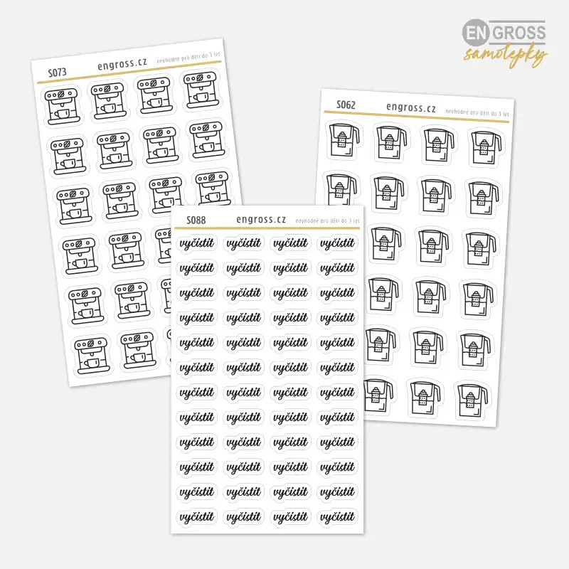 Ať už se chystáte na mytí oken, čištění kávovaru nebo úklid koupelny, tyto samolepky vám pomohou mít vše černé na bílém.