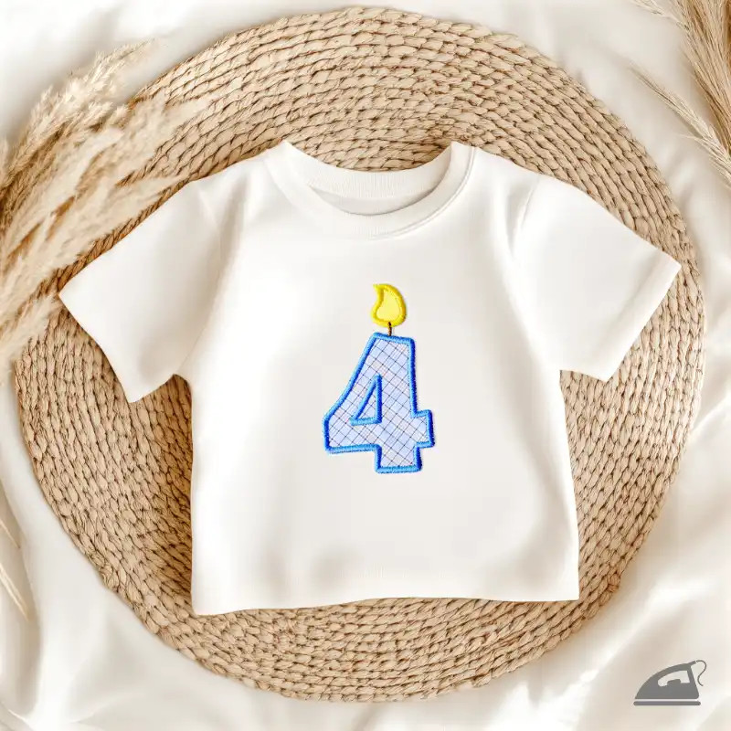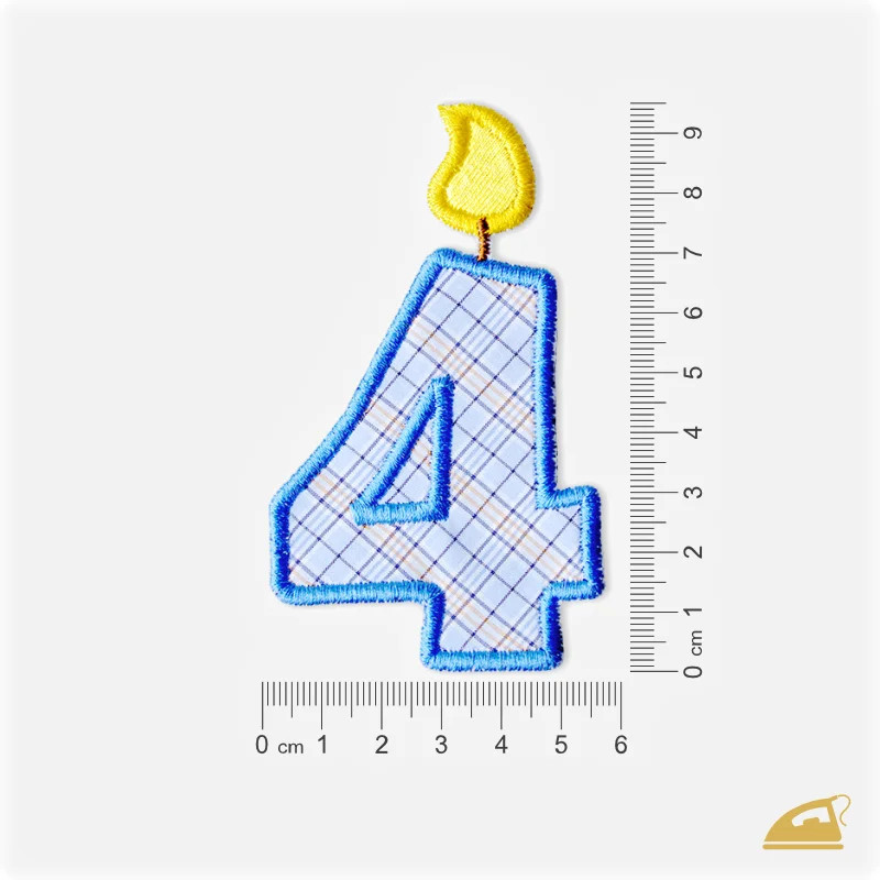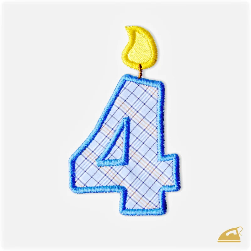 Oslavte čtvrté narozeniny svého chlapečka s naší vyšívanou nažehlovačkou ve tvaru modré svíčky se žlutým plamínkem. Tato precizní dekorace během okamžiku promění obyčejné tričko v unikátní narozeninový model.