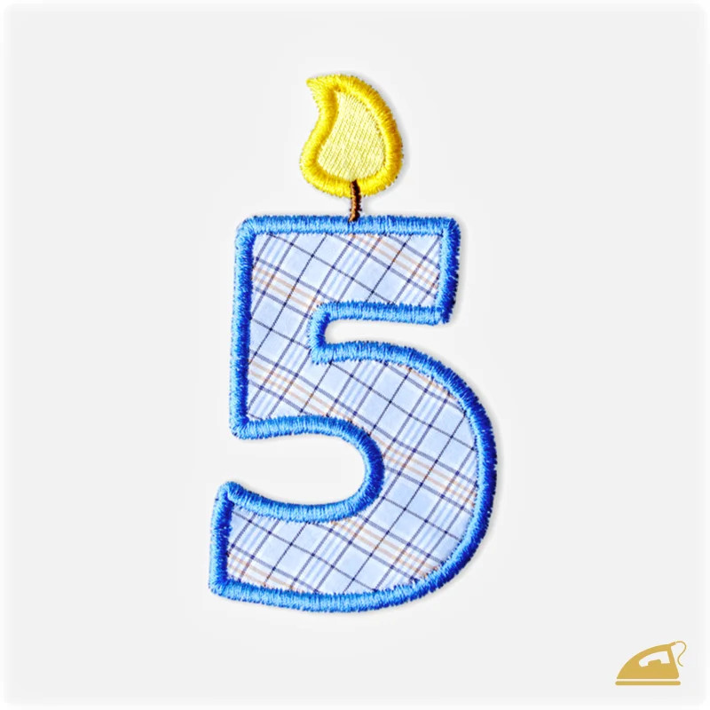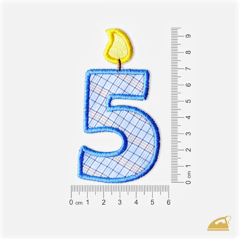 Oslavte páté narozeniny svého chlapečka s naší vyšívanou nažehlovačkou ve tvaru modré svíčky se žlutým plamínkem. Tato precizní dekorace okamžitě promění obyčejné tričko nebo mikinu v unikátní narozeninový model.