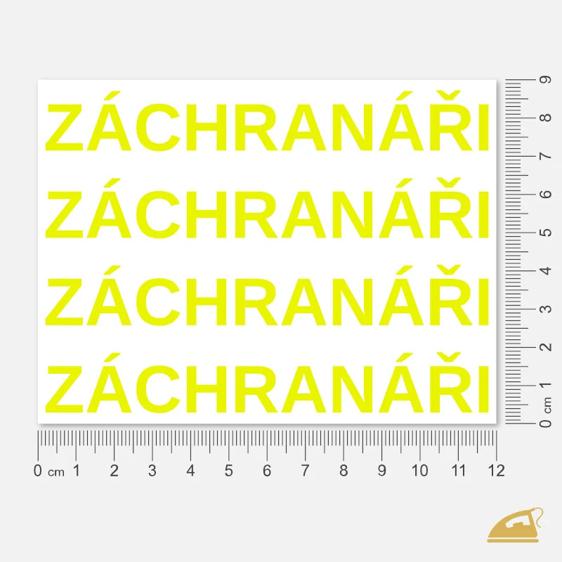Potřebujete jasné a vysoce kontrastní označení pro záchranářské oděvy? Naše neonové nažehlovací nápisy ZÁCHRANÁŘI jsou navrženy pro maximální identifikaci personálu za každého denního světla. Díky sytému neonovému pigmentu v žluté nebo oranžové barvě získáte okamžitou vizuální autoritu.
