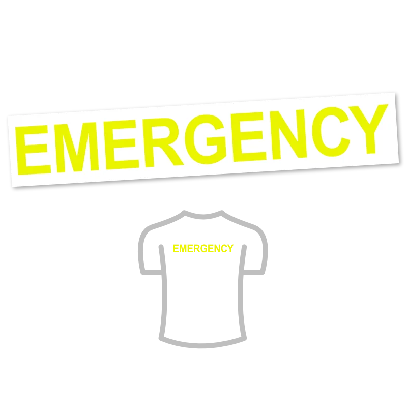 Tento nápis je určen pro denní operace, kdy neonové pigmenty poskytují nejvyšší možný jas. Pro vytvoření kompletní uniformy doporučujeme kombinovat s naší malou sadou nápisů EMERGENCY na hruď a rukávy.
