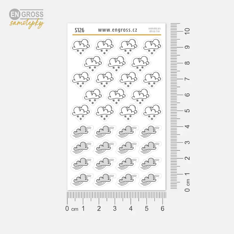 Samolepky lze snadno kombinovat s dalšími aršíky z kolekce počasí, takže si můžeš postupně sestavit kompletní sadu pro všechny typy počasí během celého roku. Samolepky vyrábíme v České republice s důrazem na kvalitu tisku, detail kresby a jemnou estetiku.