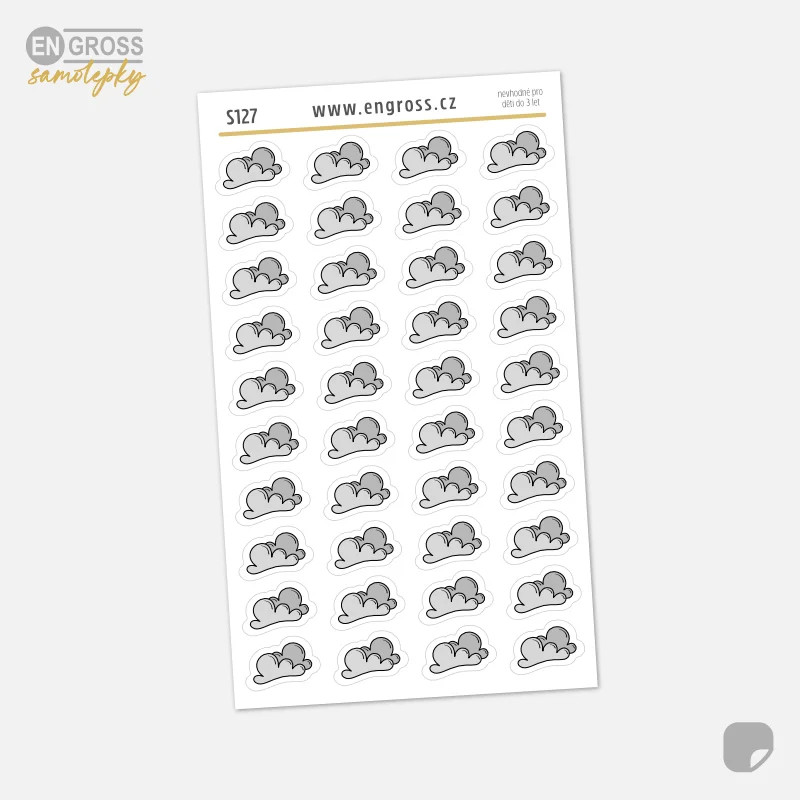 Aršík samolepek do diáře zachycuje zatažené počasí v podobě šedých mraků. Najdeš na něm 40 malých nálepek, které jsou ideální pro každodenní zaznamenávání počasí do diáře, plánovače nebo bullet journalu.