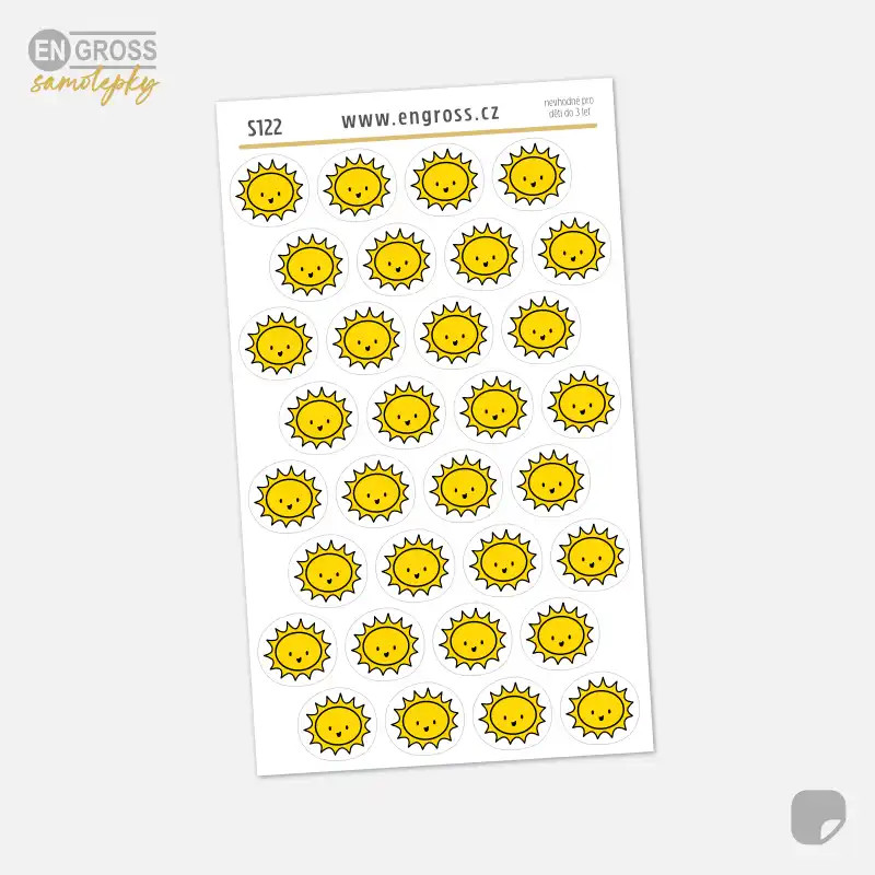 Veselé plánovací samolepky s usmívajícím se sluníčkem pro jasné a povedené dny. Malý detail, který rozzáří každý diář.