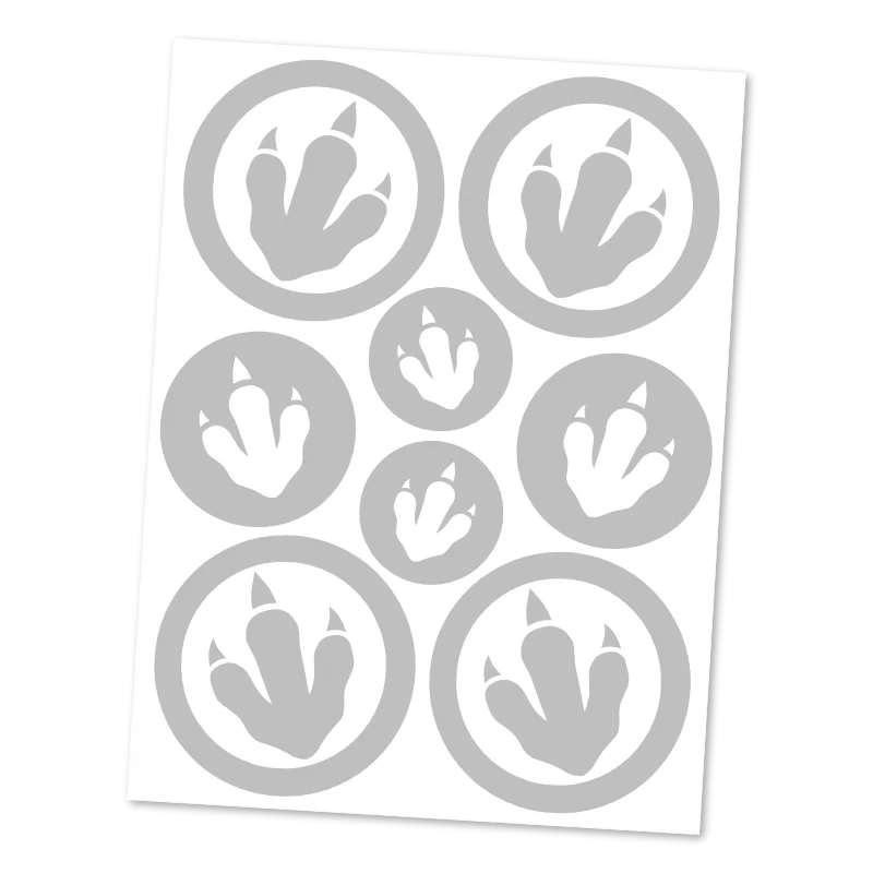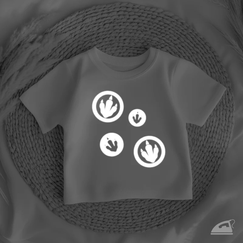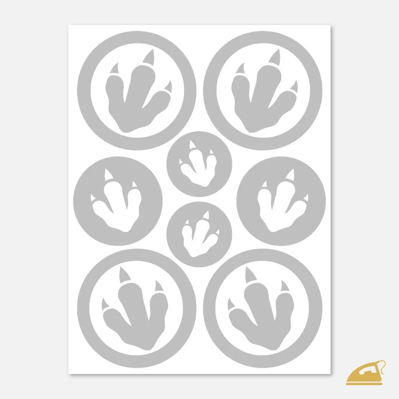 Chcete, aby vaše děti byly vidět, ale klasické tvary je nebaví? Naše reflexní nažehlovačky Dinosauří stopy jsou trefou do černého (nebo spíše do zářivého). Na archu 9x12 cm najdete 8 stop různých velikostí a typů.