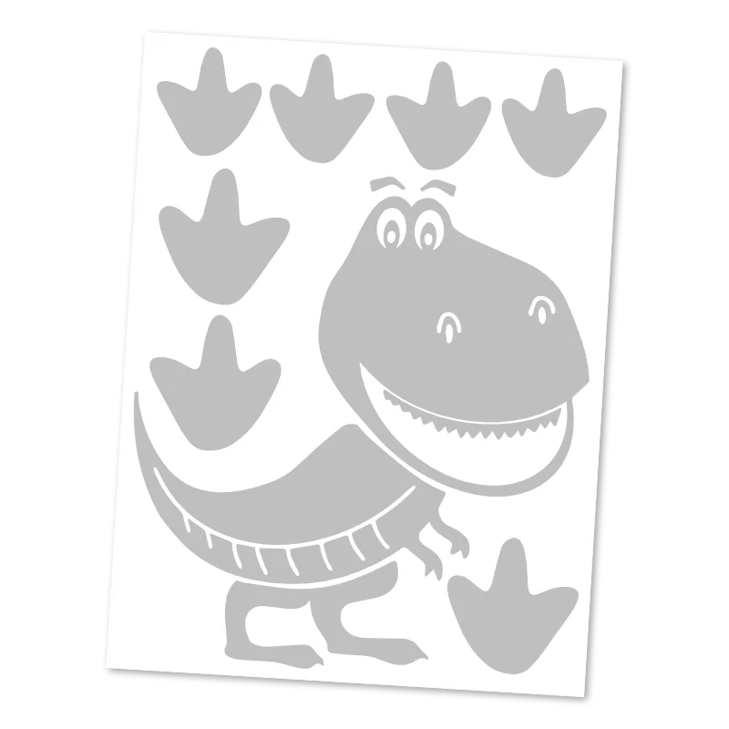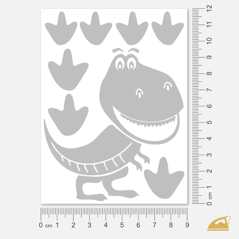 Fascinují vaše dítě dinosauři? S naší reflexní nažehlovačkou Tyranosaura Rexe spojíte dětské nadšení s klidem rodiče. Na archu 9x12 cm najdete jednu velkou postavu T-Rexe a 7 doprovodných stop, které můžete na oblečení rozmístit a vytvořit tak příběh o dinosauřím putování.