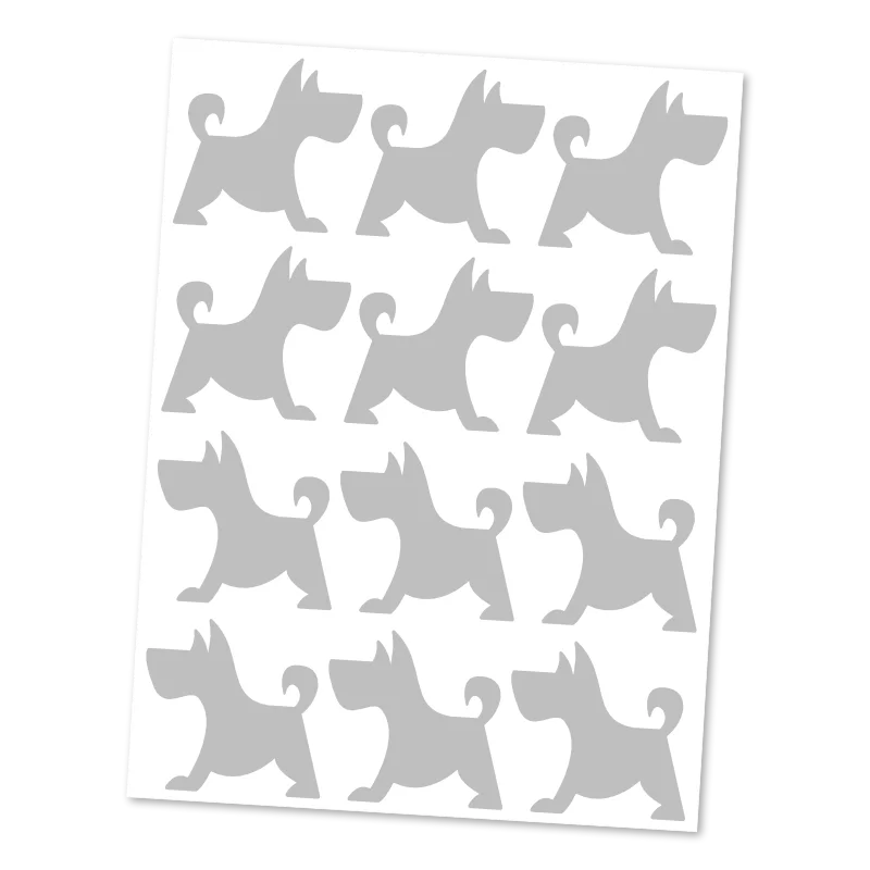 Reflexní nažehlovací siluety malých pejsků pro hravý a variabilní potisk textilu. Praktický motiv, který zvyšuje viditelnost a ladí s každým stylem.