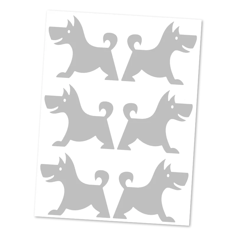 Reflexní nažehlovací siluety velkých pejsků pro hravý a variabilní potisk textilu. Zažehlovací motiv, který zvyšuje viditelnost a ladí s každým stylem.