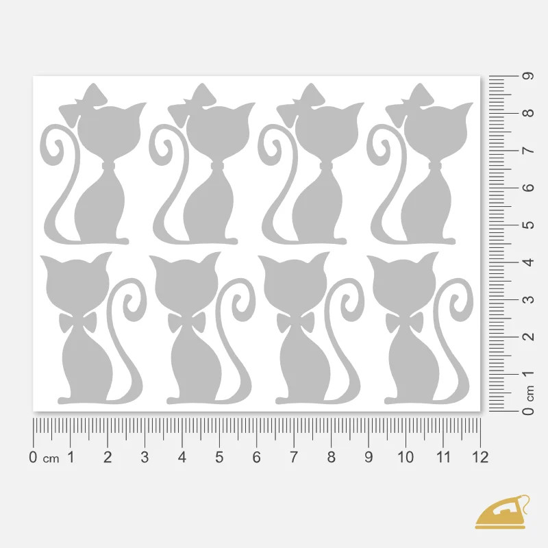 Vyjádřete svou lásku ke kočkám a zároveň udělejte maximum pro svou bezpečnost. Naše reflexní nažehlovačky Kočičí pár nabízejí hravý a elegantní design, který na cestách nepřehlédne žádný řidič. Na archu 9x12 cm najdete celkem 8 postaviček: čtyři kočičí slečny s mašlí na hlavě a čtyři kocouří gentlemany s motýlkem na krku.