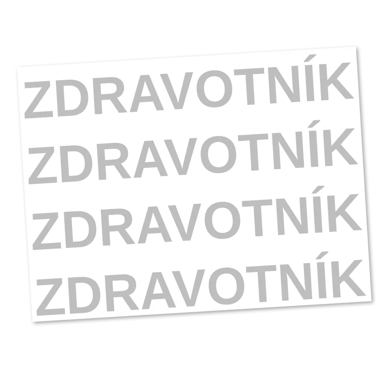 Reflexní nažehlovací potisk s nápisem ZDRAVOTNÍK. Na archu 9 × 12 cm se nachází 4 kusy nápisu, ideální velikost pro přední stranu oděvu i doplňky.