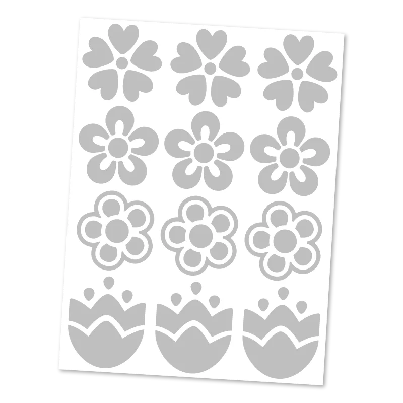 Každý arch obsahuje 12 kytiček – čtyři druhy květin, vždy po třech kusech, které lze jednoduše vystřihnout a nažehlit žehličkou. Tento doplněk je ideální pro děti i dospělé, zejména ženy, kteří chtějí spojit estetiku s bezpečností.