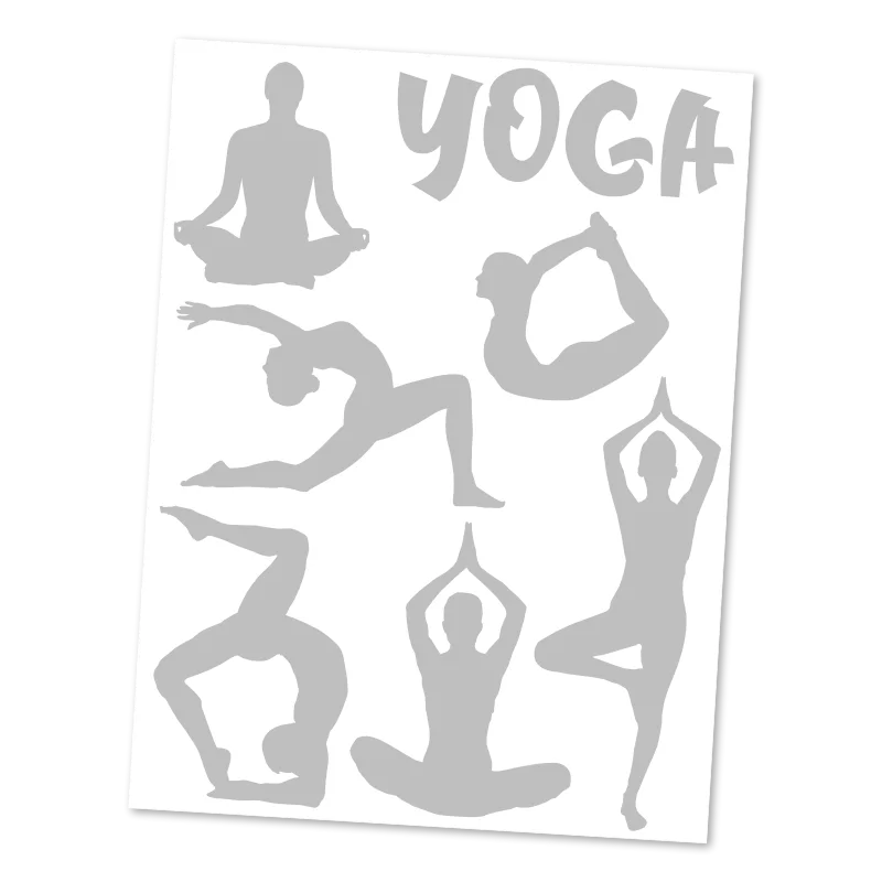 Patří jóga k vašemu životnímu stylu? Naše reflexní nažehlovačky s motivy jógy jsou dokonalým spojením designu a praktičnosti. Na archu 9x12 cm najdete 6 precizně vyvedených siluet v klasických jógových ásanách a stylový anglický nápis YOGA. Tento set je ideální pro personalizaci vašeho sportovního oblečení, kterému dodá unikátní vzhled.