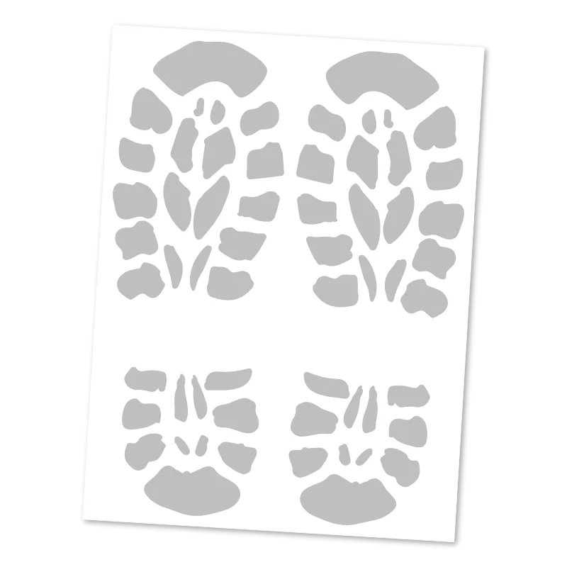 Plánujete další výpravu do přírody nebo večerní sestup z hor? Naše reflexní nažehlovačky s motivem outdoorových stop jsou funkčním doplňkem pro každého turistu. Na archu 9x12 cm najdete dva velké otisky podrážek, které svým designem připomínají stopy zanechané v náročném terénu.
