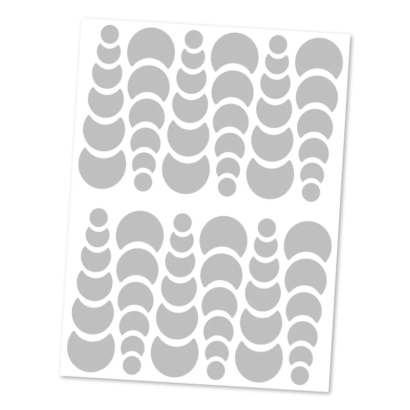 Originální sada 72 reflexních puntíků uspořádaných do řad podle velikosti. Díky promyšlené gradaci vytvářejí na oblečení unikátní prostorový 3D dojem, zatímco certifikovaný materiál zajistí vaši perfektní viditelnost.