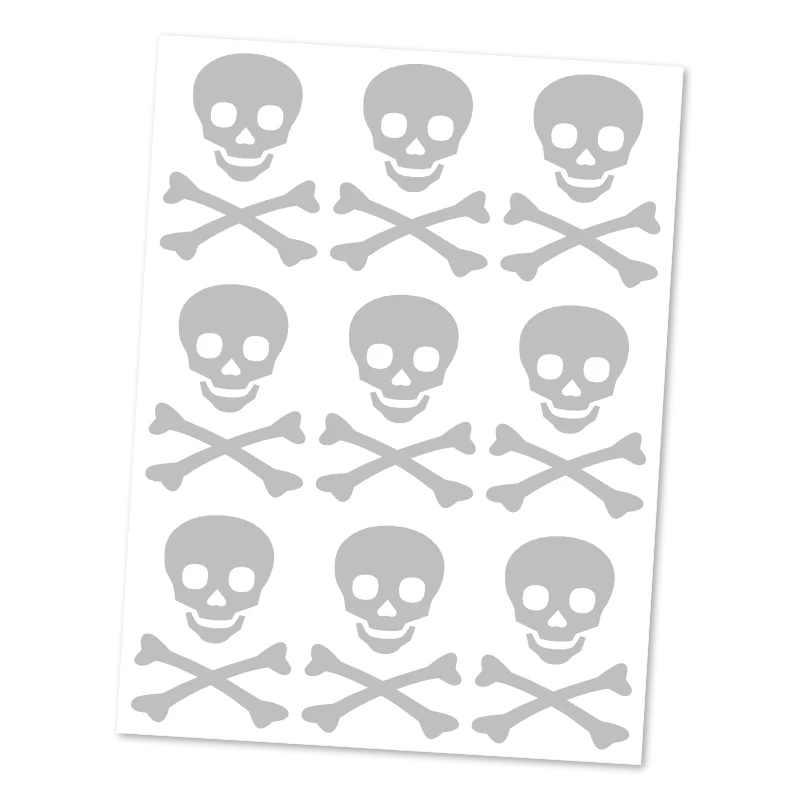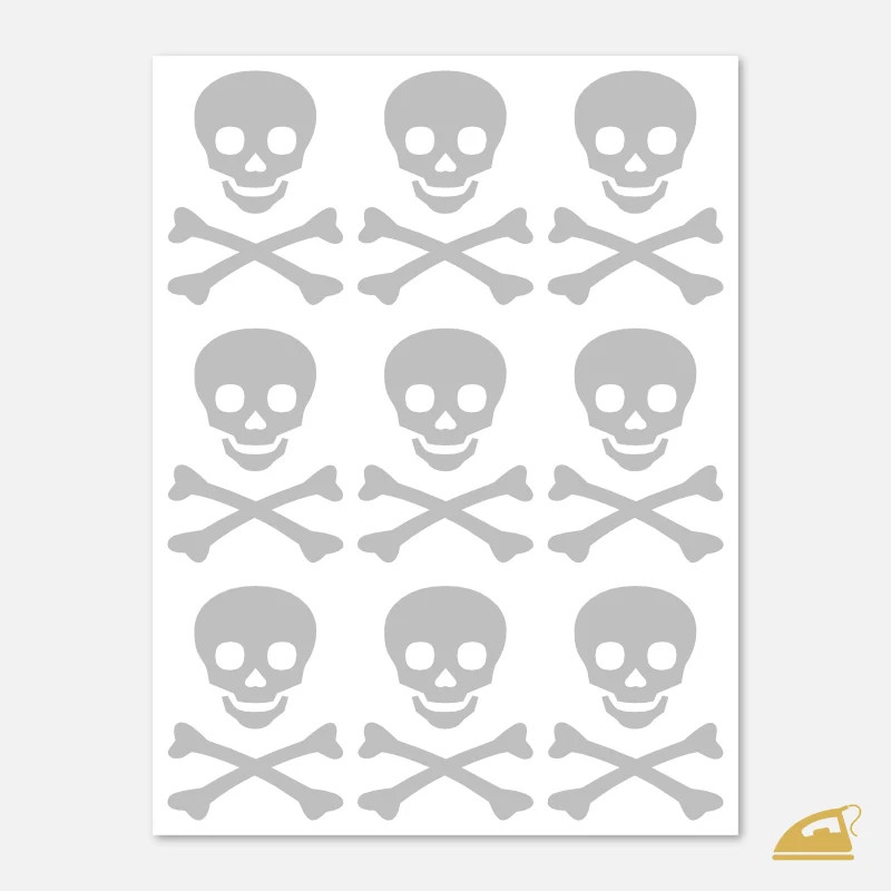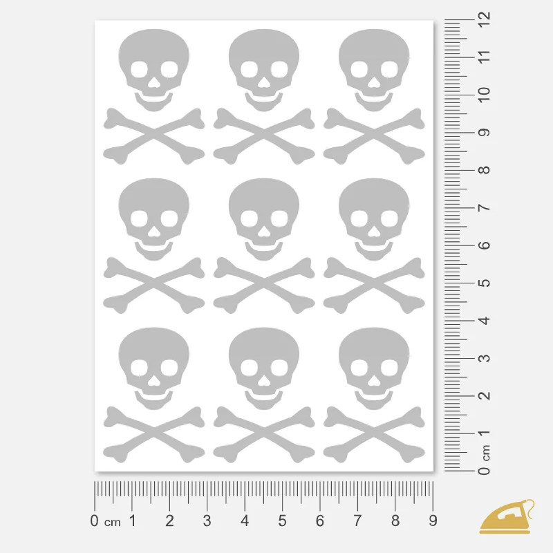 Hledáte reflexní prvek, který má charakter? Naše reflexní nažehlovačky s usměvavou lebkou jsou důkazem, že bezpečnost nemusí být nuda. Na archu 9x12 cm pro vás máme připraveno 9 poctivých lebek se zkříženými hnáty, které díky svému výraznému tvaru nabízejí skvělou odrazovou plochu.