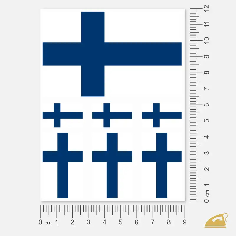 Připraveni na sportovní utkání za pár sekund! Tento arch 9 × 12 cm přináší jednu velkou, tři střední a tři malé finské vlajky, které promění každé tričko, mikinu nebo kšiltovku ve fanouškovský klenot.