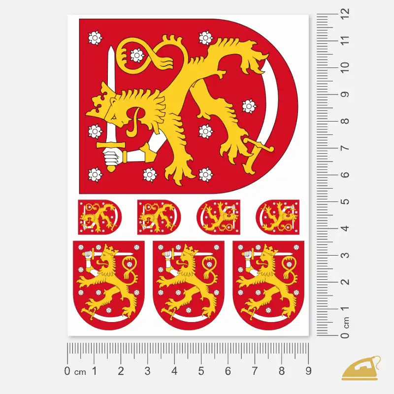 Tento detailně zpracovaný finský státní znak na archu 9 x 12 cm obsahuje jeden velký, tři malé a čtyři mini motivy. Stačí vystřihnout, nažehlit a za minutu máš z obyčejného kousku oblečení fanouškovský originál.