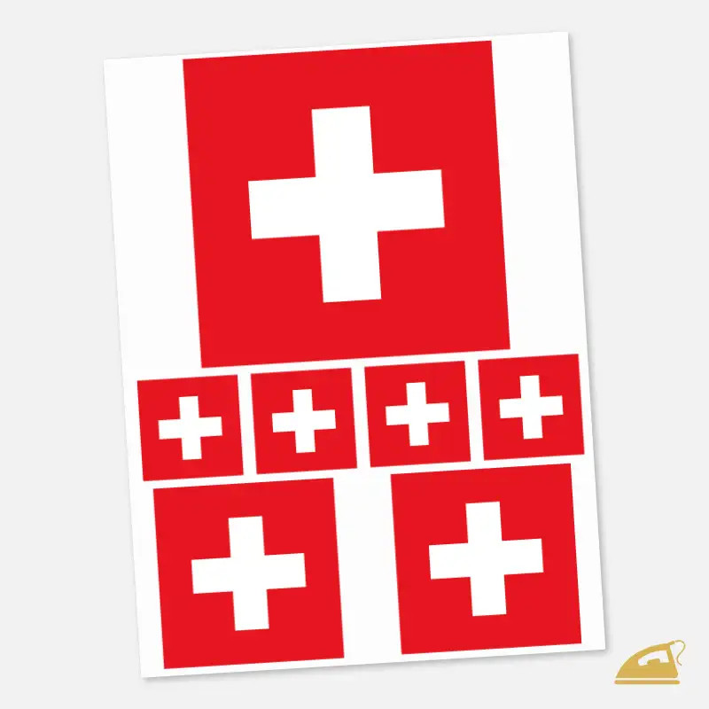 Vlajka Švýcarska jako kvalitní nažehlovačka. Odolný DTF potisk pro trička, mikiny i dresy – pro fanoušky, sport i radost z vlastenectví.