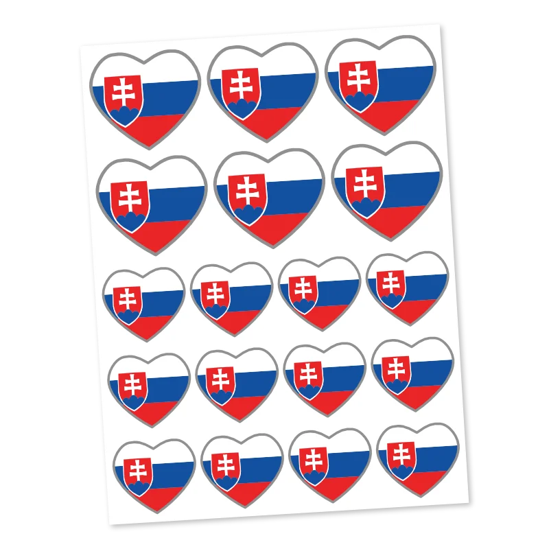 Ozdobte své oblečení i doplňky bohatou sadou 18 mini nažehlovaček ve tvaru srdce se slovenskou vlajkou. Kvalitní DTF technologie zaručuje zářivé barvy, vysokou pružnost a velmi snadnou aplikaci běžnou žehličkou.