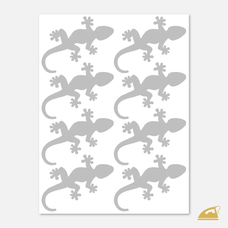 Reflexní nažehlovačky s malými siluetami ještěrek na archu 9×12 cm. Výrazný prvek pro oblečení i doplňky dětí i dospělých.