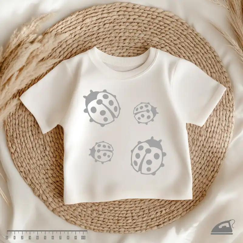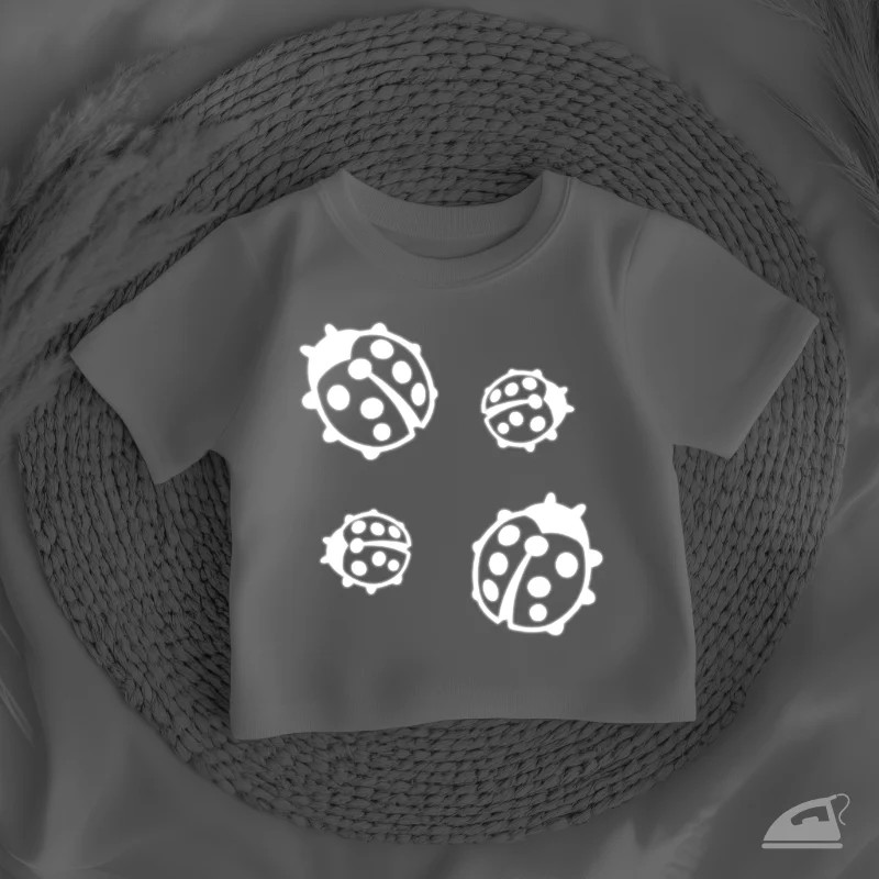 Reflexní nažehlovačky Beruška malá jsou navržené jako detail, který oživí dětské oblečení a zároveň zvýší viditelnost. Na archu o velikosti 9 × 12 cm se nachází dvanáct malých berušek, které umožňují rovnoměrné rozmístění motivů nebo jejich použití na více kusech oblečení.