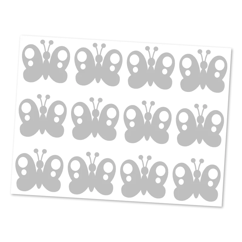 Reflexní nažehlovačky Motýl přinášejí hravý motiv, který zároveň zvyšuje viditelnost při zhoršených světelných podmínkách. Na archu o velikosti 9 × 12 cm se nachází dvanáct motýlů, které lze využít jednotlivě nebo rozmístit do vzoru.
