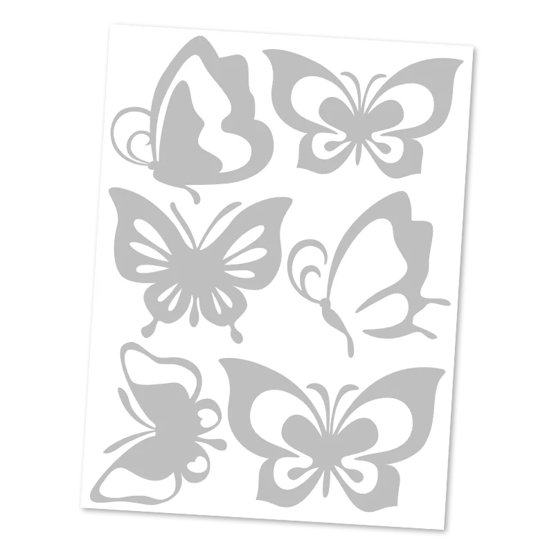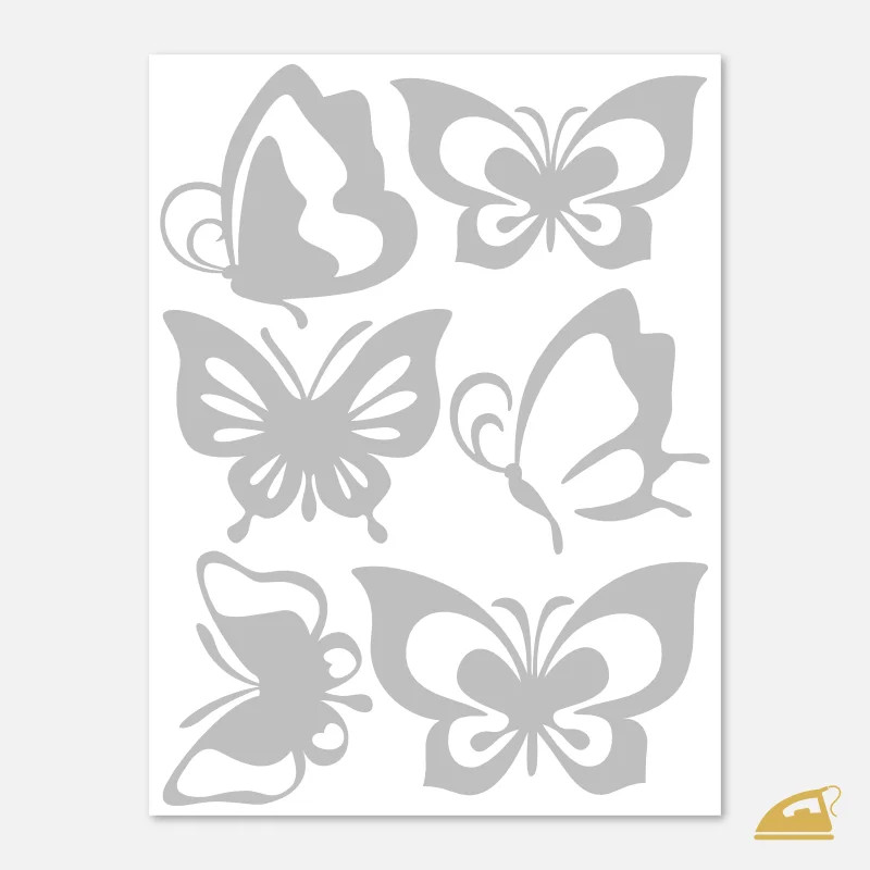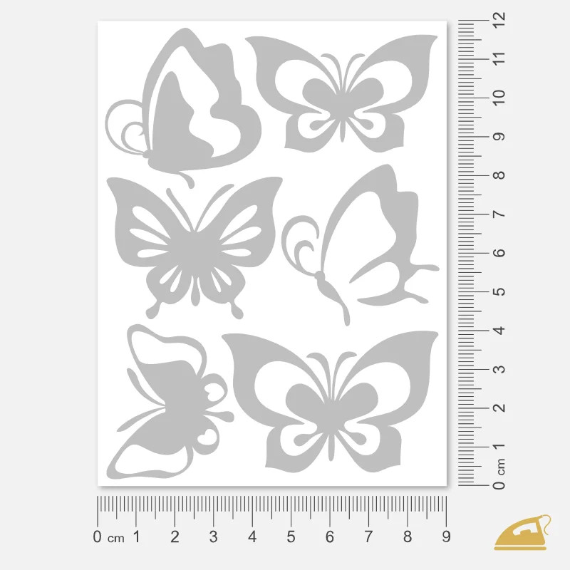 Reflexní nažehlovačky s velkými motýly různých tvarů na archu 9×12 cm. Stylový a funkční doplněk pro děti i dospělé.