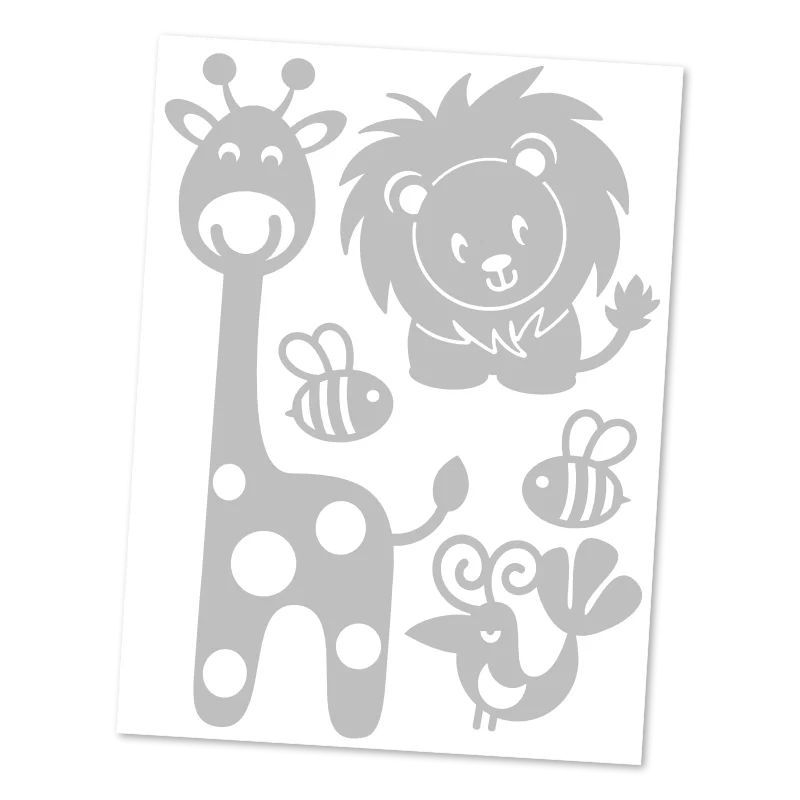 Reflexní nažehlovačky přinášejí hravou kolekci zvířecích kamarádů, která potěší menší děti i jejich rodiče. Na archu o velikosti 9 × 12 cm se nachází žirafa, lev, dvě včelky a ptáček – jemné ilustrace, které působí mile, přátelsky a dětsky.