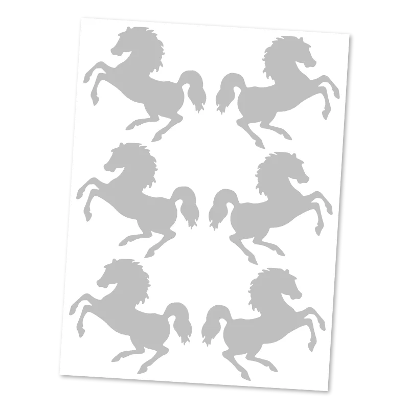 Dodejte svému oblečení nádech nespoutané energie s reflexními siluetami vzpínajících se koní. Tato sada šesti nažehlovaček je perfektním doplňkem pro každého milovníka koní, který chce spojit svou vášeň s maximální viditelností.