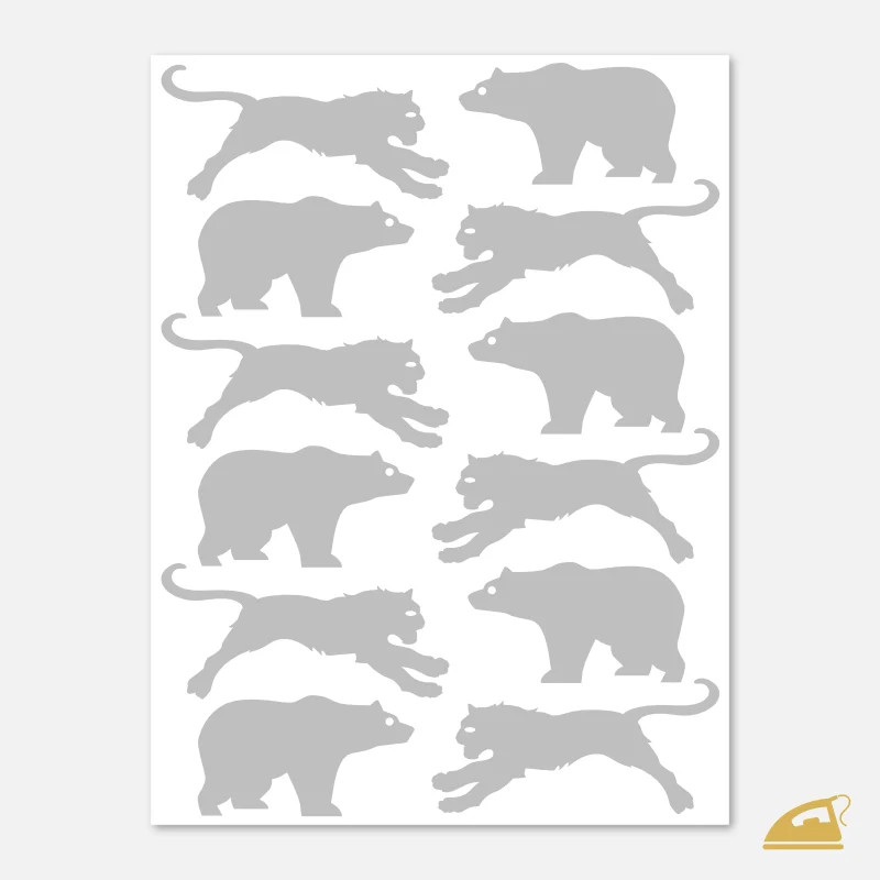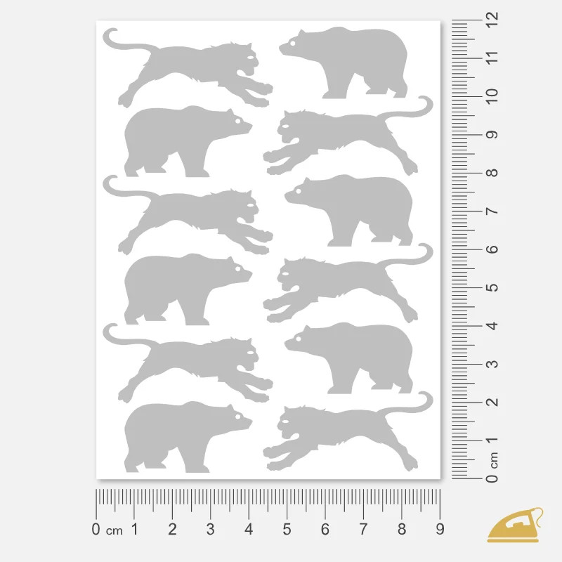 Máte rádi přírodu a hledáte reflexní prvek, který nepůsobí dětsky, ale má styl? Naše reflexní nažehlovačky s motivem divokých šelem jsou navrženy pro ty, kteří preferují minimalistický a silný design. Na archu 9x12 cm najdete celkem 12 siluet – 6 medvědů a 6 pum, které skvěle vyniknou na tmavém i světlém oblečení.