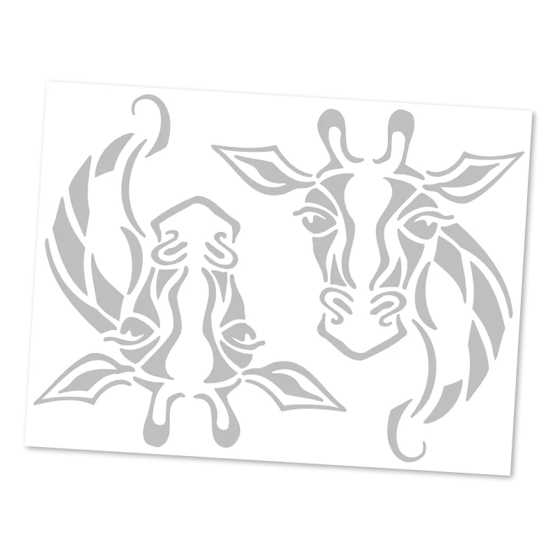 Dodejte svému outfitu nádech exotiky a umění. Dvě velké reflexní žirafy v propracovaném „tattoo“ stylu jsou ideální volbou pro ty, kteří hledají originální dekoraci a zároveň nekompromisní bezpečnost na cestách.